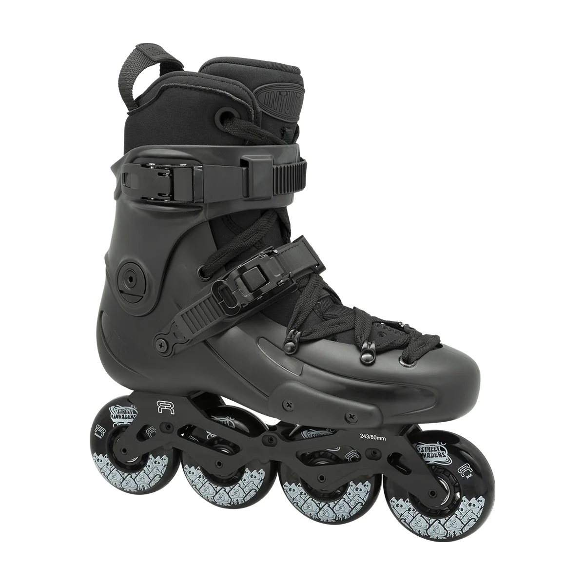 The FR1 80 DELUXE INTUITION is the top-tier freeride skate from FR SKATES, designed for skaters who demand maximum control, comfort, and performance. It features the Deluxe V3 aluminum frames for superior stability thanks to their ultra-low and short profile, and INTUITION heat-moldable liners for unmatched fit and reactivity.